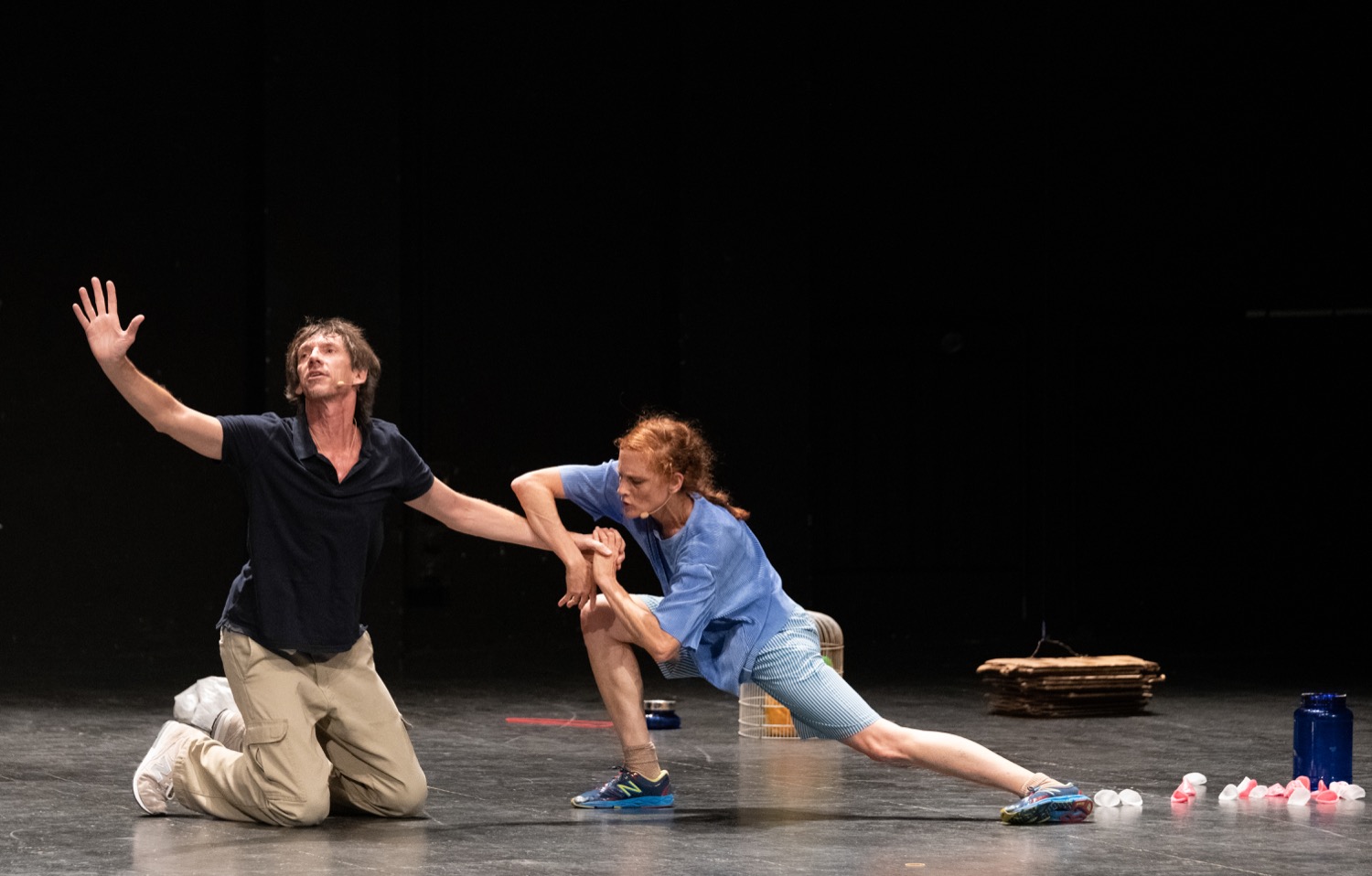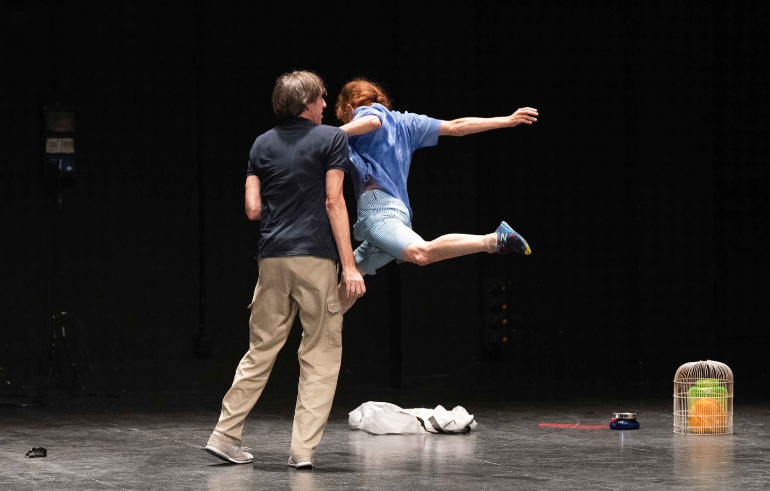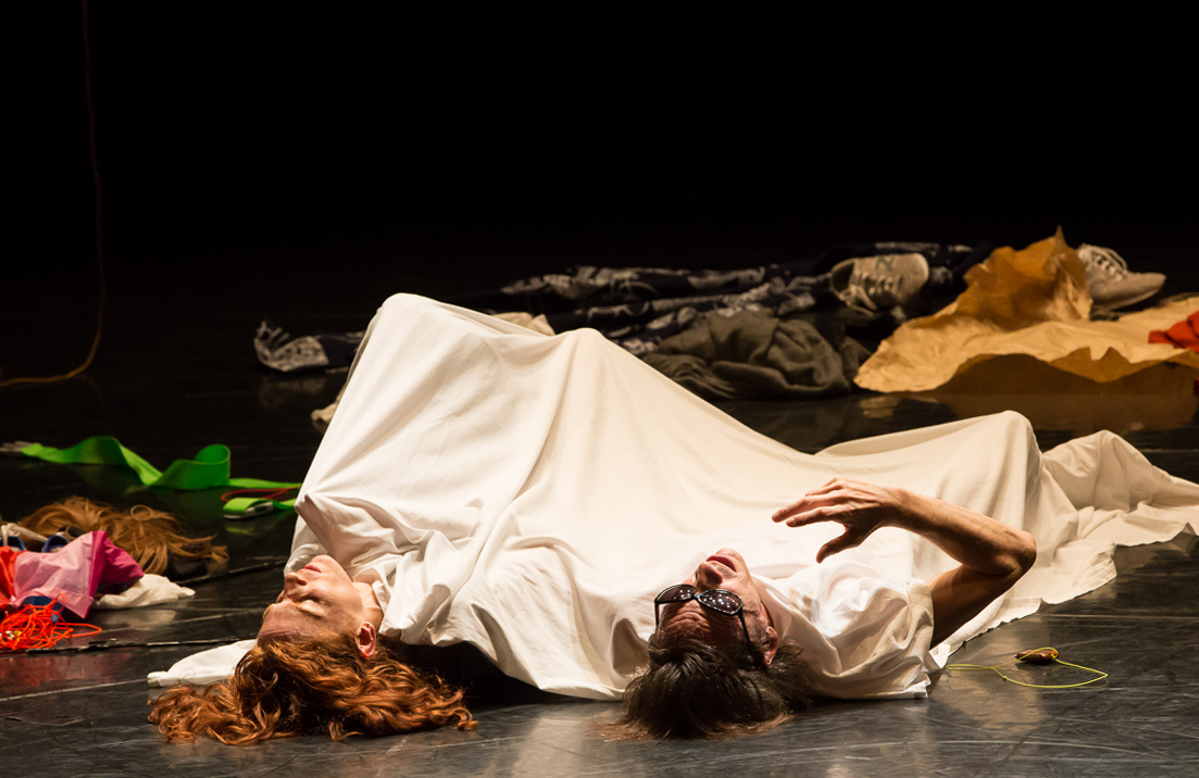 "The work by Tamar Lamm and David Kern dissolves the line between dance and cognition. As the work evolves, it narrates its own occurrences. Several coexisting realms converge or diverge, always harboring surprising turns that lead to yet another realm. The performers – an exquisitely synchronized couple in love - verbalize on stage what they are thinking in designing the choreography, while at that very moment they already stream on to the next movement in a spiral of coexisting infinite elements. The time dimension thus comes to life almost as an independent third dancer. Sprinkled with humor, this innovative work takes the audience into the enjoyable twilight zone between order and turbulence, independence and togetherness." - Rachel Alterman